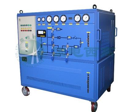 SF6气体回收装置是参照电力部 DL/T662 《六氟化硫充气及回收装置》标准生产制造的,由SF6压缩机、真空泵、真空系统有防回油装置, 冷凝系统、贮液罐、净化系统内置可再生干燥过滤器、尘埃过滤器、球型阀门、真空计以及电气控制系统,压力探测,温度计及报警装置的控制和检测仪表等辅助设施等组成。